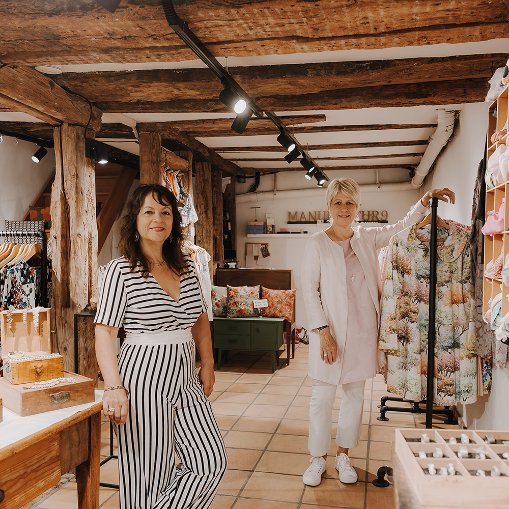 Das stimmungsvolle Lädeli manufaktur9 vereint Schmuckkreationen von Nadia Acquaroli mit Modeunikaten von Ines Püntener-Moser. Alles wird in liebevoller Handarbeit hergestellt.